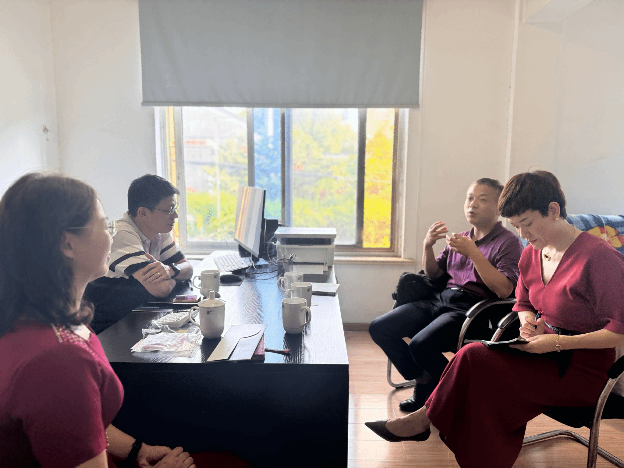 随后,学院一行人又前往慈溪拜访了1984级校友杨风丽女士、1991级校友包振宇先生,受到两位校友的热情接待。刘小娣副书记介绍了近半年来琉璃神社 校友会筹备的进展,认真听取了校友们对校友会组织架构、活动形式等方面的宝贵意见。双方表示,校友会的成立不仅是对校友们成就的认可,更为校友们提供了一个交流思想、分享资源、促进合作的宝贵平台,要持续凝聚校友力量,为学院高质量发展作贡献。