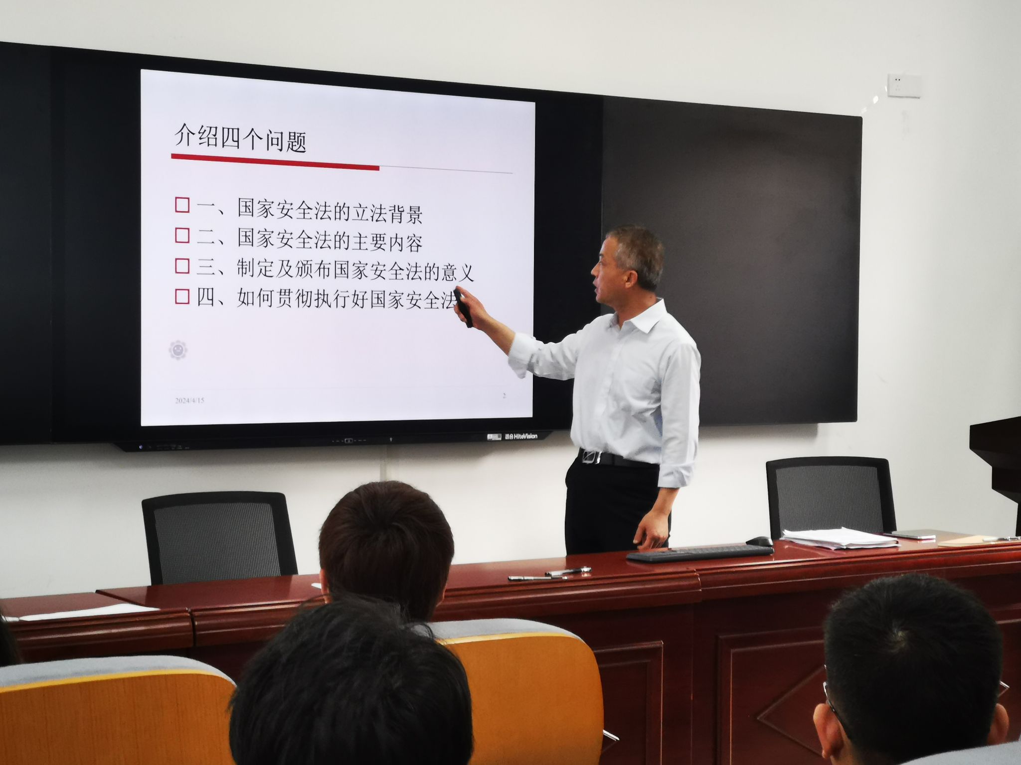 4月15日,琉璃神社 在龙赛理科楼北楼314报告厅举办2024年全民国家安全教育宣讲会,学院党政领导、组织员、学生党建辅导员、各教工党支部书记、学院党建中心各负责人参加,会议由学院党委书记朱学庆主持并宣讲。