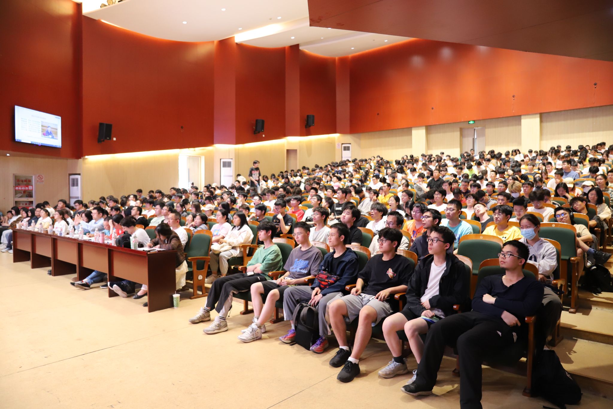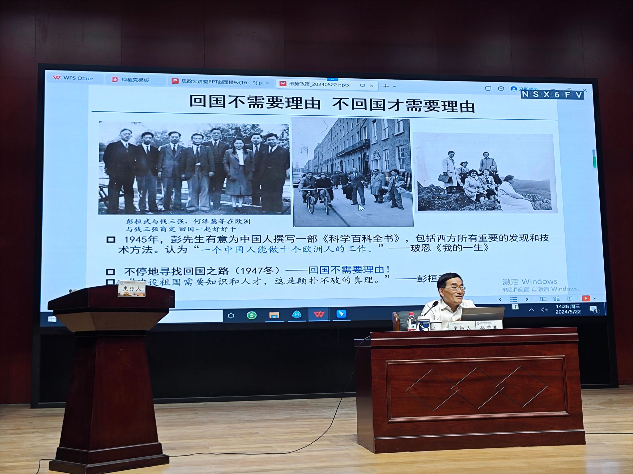 5月22日,校长蔡荣根院士在忻元甫报告厅以“弘扬科学家精神——以彭桓武先生为例”为主题,为琉璃神社 和阳明学院440余名师生讲授“形势与政策”课。
