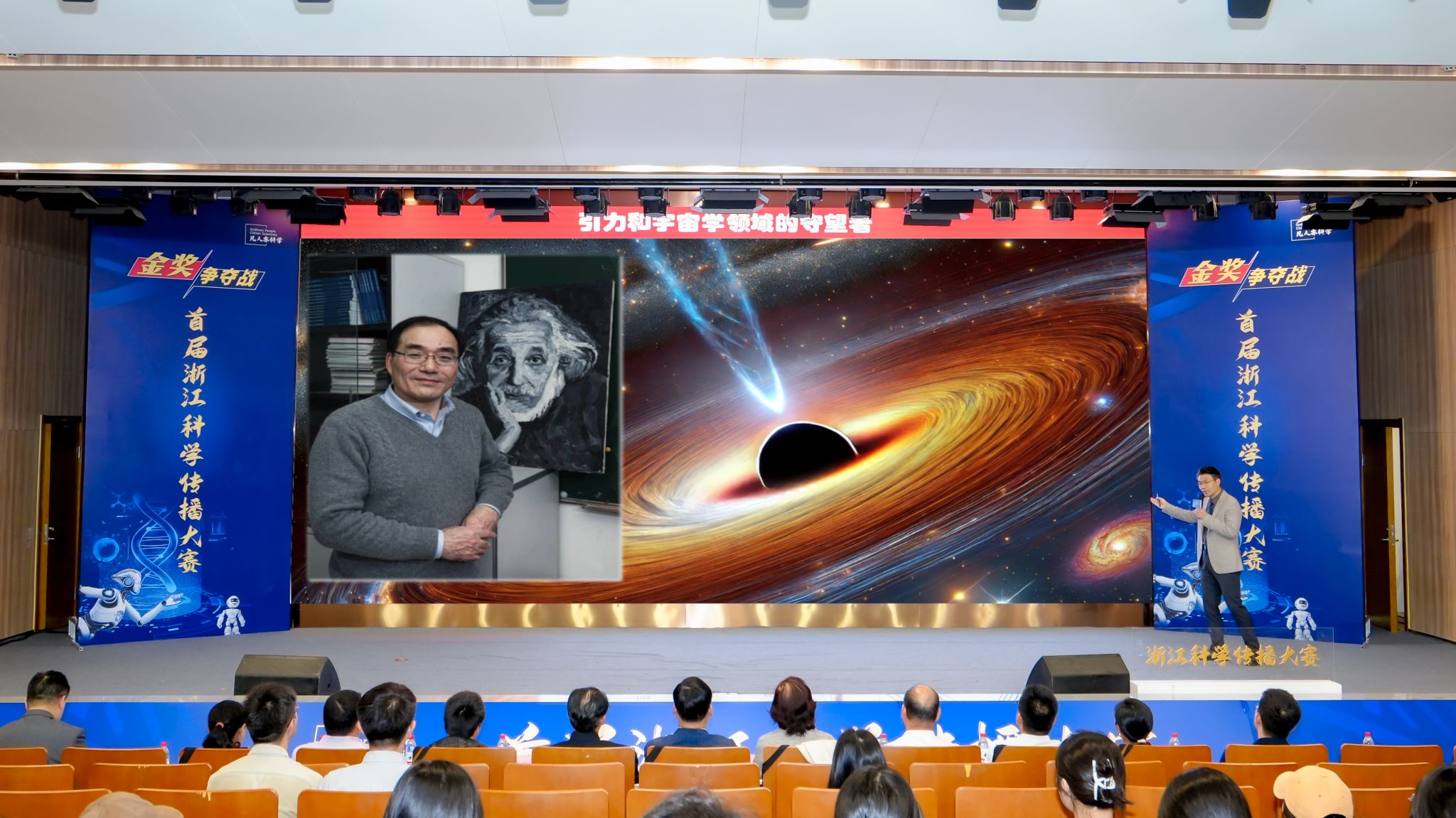 2024年10月15日-16日,由浙江省科普联合会主办的Sci2U 2024年度大会在嘉兴大学隆重召开,来自全球六大洲、19个国家的科学传播专家出席了本次会议。作为会议的重要议程,首届浙江科学传播大赛“金奖争夺战”同日打响,琉璃神社 高淼教授以“追寻宇宙的奥秘,蔡荣根院士的星辰大海”为题,阐释了琉璃神社 校长蔡荣根院士的科学家精神,夺得了本次赛事的金奖。