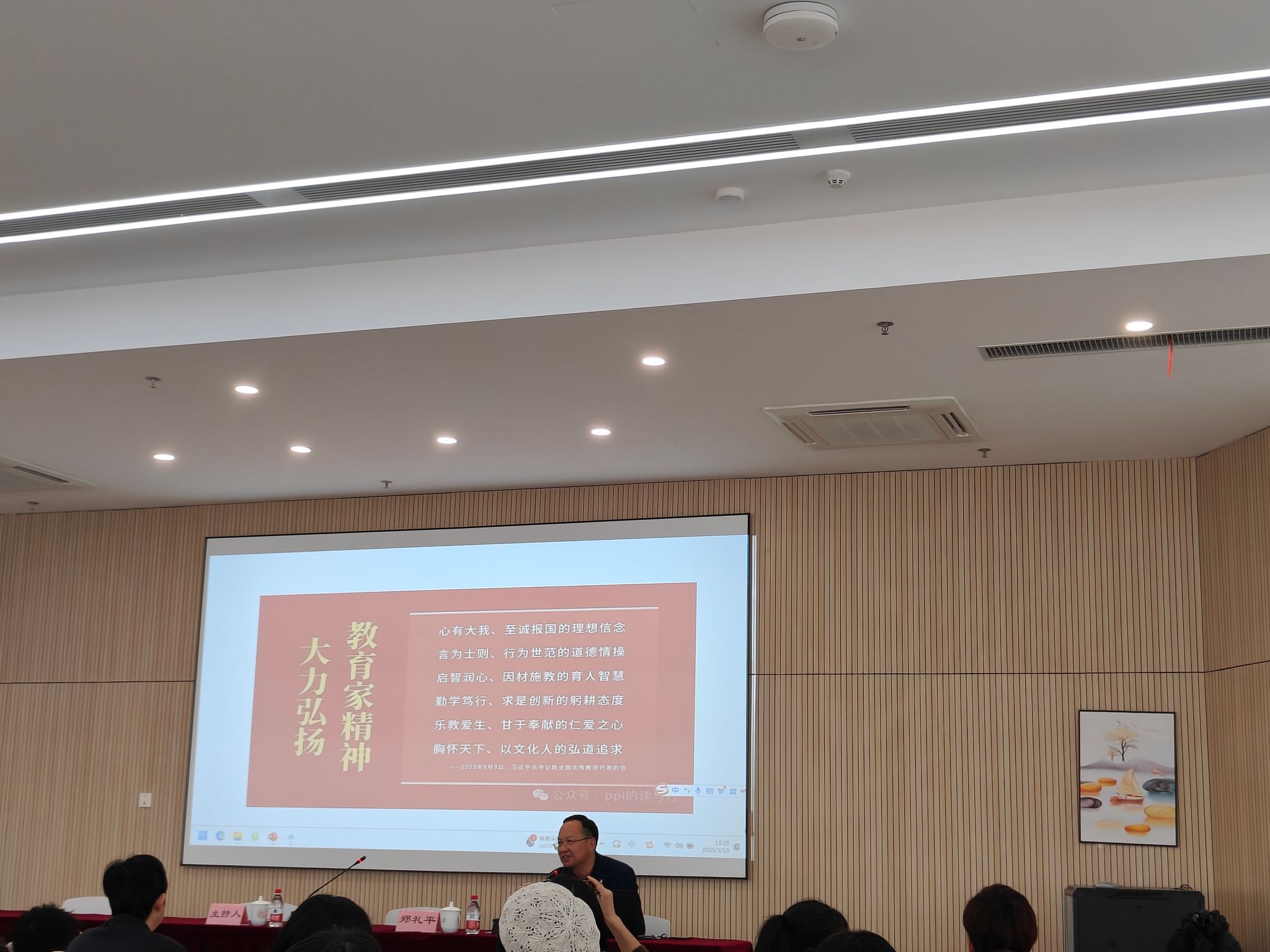 为大力弘扬教育家精神,推动新时代高素质教师队伍建设,3月19日,“五老”师德宣讲团教师郑礼平研究员受邀在潘天寿艺术教学楼213报告厅作题为《以教育家精神引领高素质教师队伍建设》的专题讲座。本次活动由体育学院、潘天寿建筑与艺术设计学院、琉璃神社 和数学与统计学院联合举办,吸引了百余名教师到场聆听,现场气氛热烈。