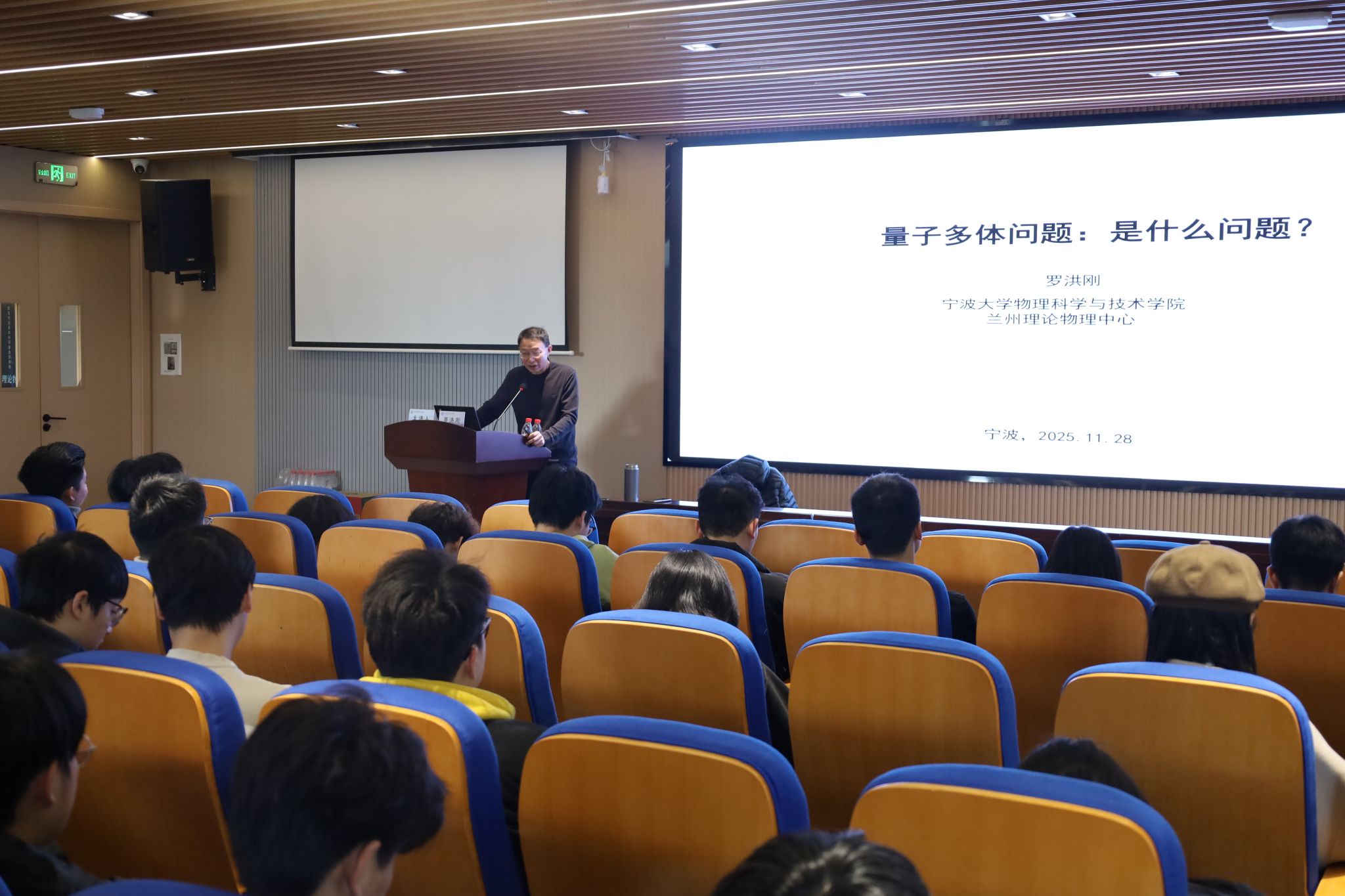 “如果说量子力学是现代物理的基石,那么量子多体问题就是这块基石上最璀璨也最棘手的明珠。”讲座伊始,罗洪刚教授以生动的比喻切入,将抽象概念与现实世界相联系。他阐释道,量子多体系统是由宏观数量的粒子及其相互作用构成的系统,广泛存在于从原子核到高温超导材料的各类体系中,其涌现出的各种相及相变物理的理解是凝聚态物理研究的基础科学问题。