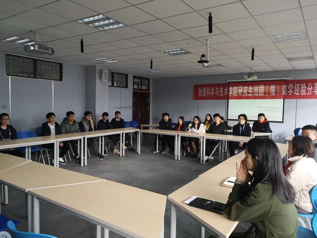 为推动高水平人才培养,拓宽学生升学渠道,1231下午物理学院在1号教学楼301智慧教室举行研究生出国(境)访学经验分享会。出席本次分享会的有学院副院长段香梅、研究生辅导员研究生50余人