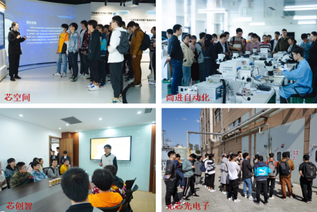 在参观芯创智创新设计服务中心时,师生们不仅了解了芯创智的经营及团队情况,还听取了在芯创智工作的物理学院校友们的工作经验分享,并与芯创智的技术总监面对面交流。而后,参观了宁波元芯光电子科技有限公司,了解了企业的基本情况、光通讯产品的应用领域以及其车间的功能。