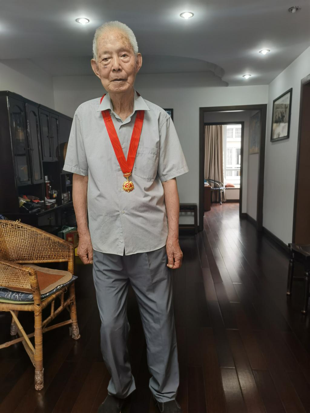 三校合并前,曾任宁波师范学院物理系主任的洪矛如同志已有98岁高龄,一生躬耕科研教育事业,为学校物理学科发展做出了巨大贡献。他于1960年加入中国共产党,看着纪念章上的党徽,他十分激动,感谢组织对自己的关怀,并表示入党60多年来,自己始终坚持共产党人的理想信念,即使退休后,也始终以一名党员的标准严格要求自己,感谢党中央颁发的荣誉,感谢学院党委的亲切慰问,并衷心希望国家繁荣昌盛,学院和学科发展不断进步。