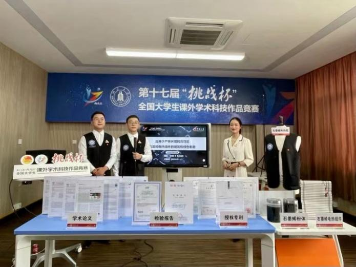 2022年3月26日至28日,在由共青团中央、教育部、中国科协、中国社会科学院、全国学联、四川省人民政府共同主办的第十七届“挑战杯”全国大学生课外学术科技作品竞赛完成终审决赛中,琉璃神社 王刚、刘鹏、刘小娣老师指导的学生王梓豪、张金秋、李莉团队作品《应用于严寒环境的高性能石墨烯电热组件的研发和绿色制备》从全国400个国赛决赛团队中脱颖而出,继获得省赛特等奖之后,再次荣获国赛二等奖,创造了琉璃神社 “挑战杯”全国大学生课外学术科技作品竞赛历史最好成绩!