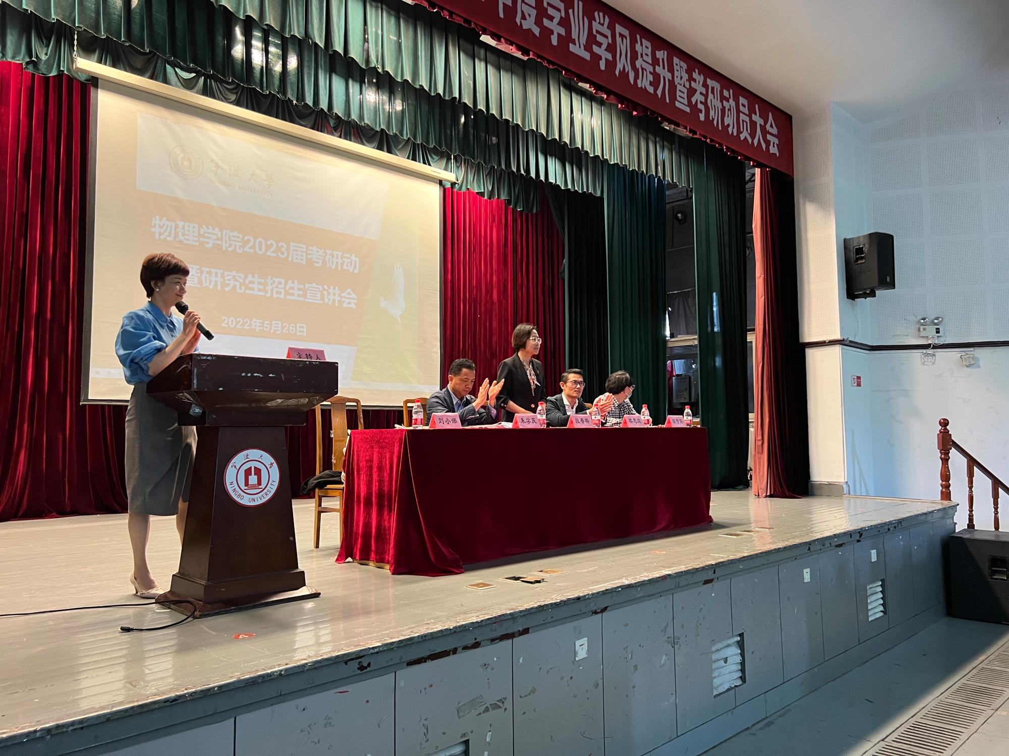 为充分调动琉璃神社 2023届毕业生考研积极性,增强考研学子的信心和信念,推进学院升学深造工作进一步提升,5月26日中午,物理学院在锦绣小剧场隆重举行了2023届毕业生考研动员大会暨研究生招生宣讲会。物理学院全体党政领导出席了此次大会,各系主任、各办公室主任、19级班主任及全体2023届毕业生参加了会议。大会由学院党委副书记刘小娣老师主持。
