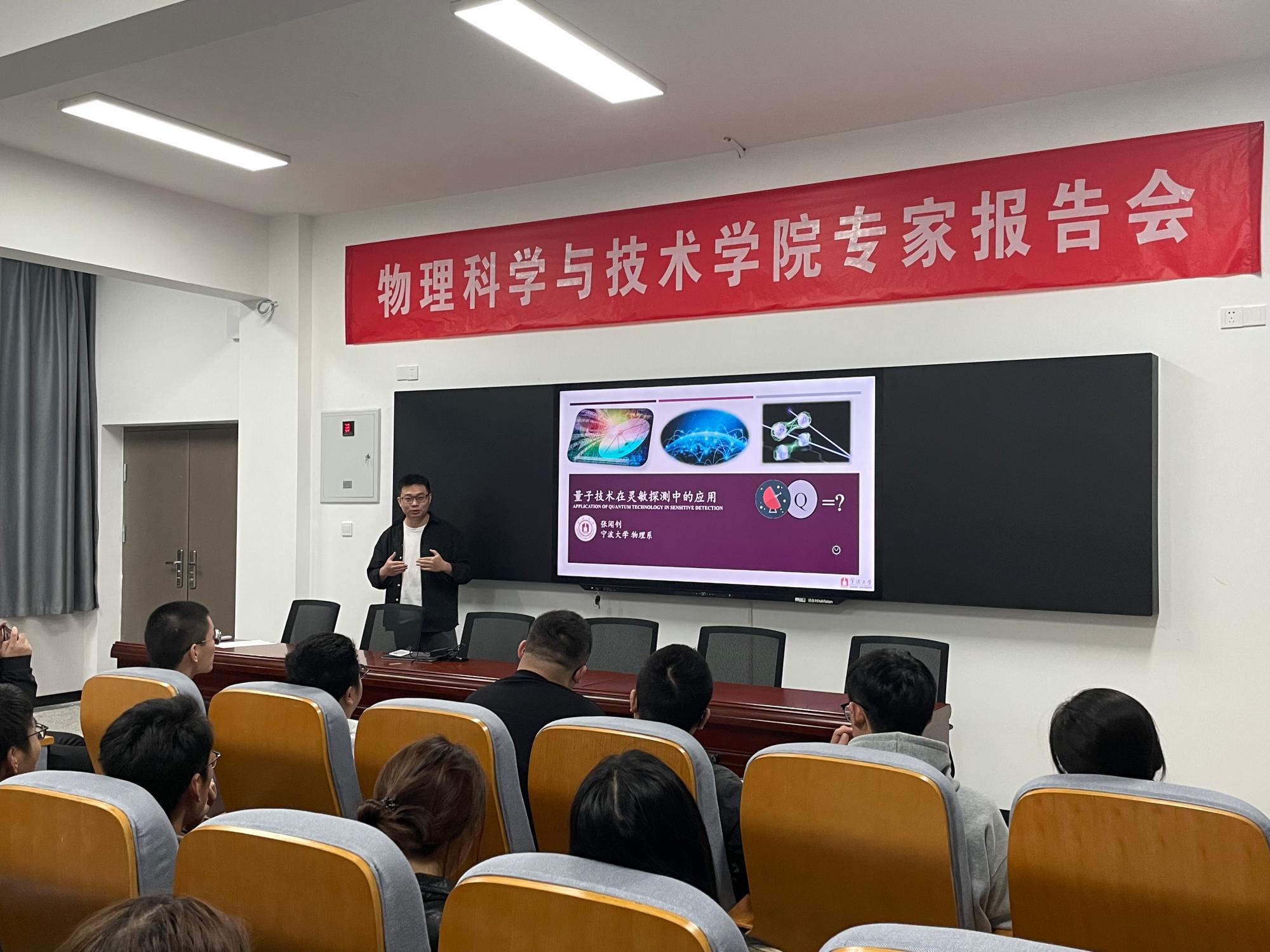 10月24日下午,2022年宁波研究生学术节专家报告会在龙赛理科楼北楼314会议室顺利举行。宁波研究生学术节专家报告会由琉璃神社 研究生工作部主办,琉璃神社 物理学院研究生会承办。本次专家报告会有幸邀请到了张闻钊老师作为主讲人。张闻钊老师为大家作题为《基于纠错码的量子照明方案》的学术报告。物理学院研究生代表和本科生代表共40余人参加了这次报告会。
