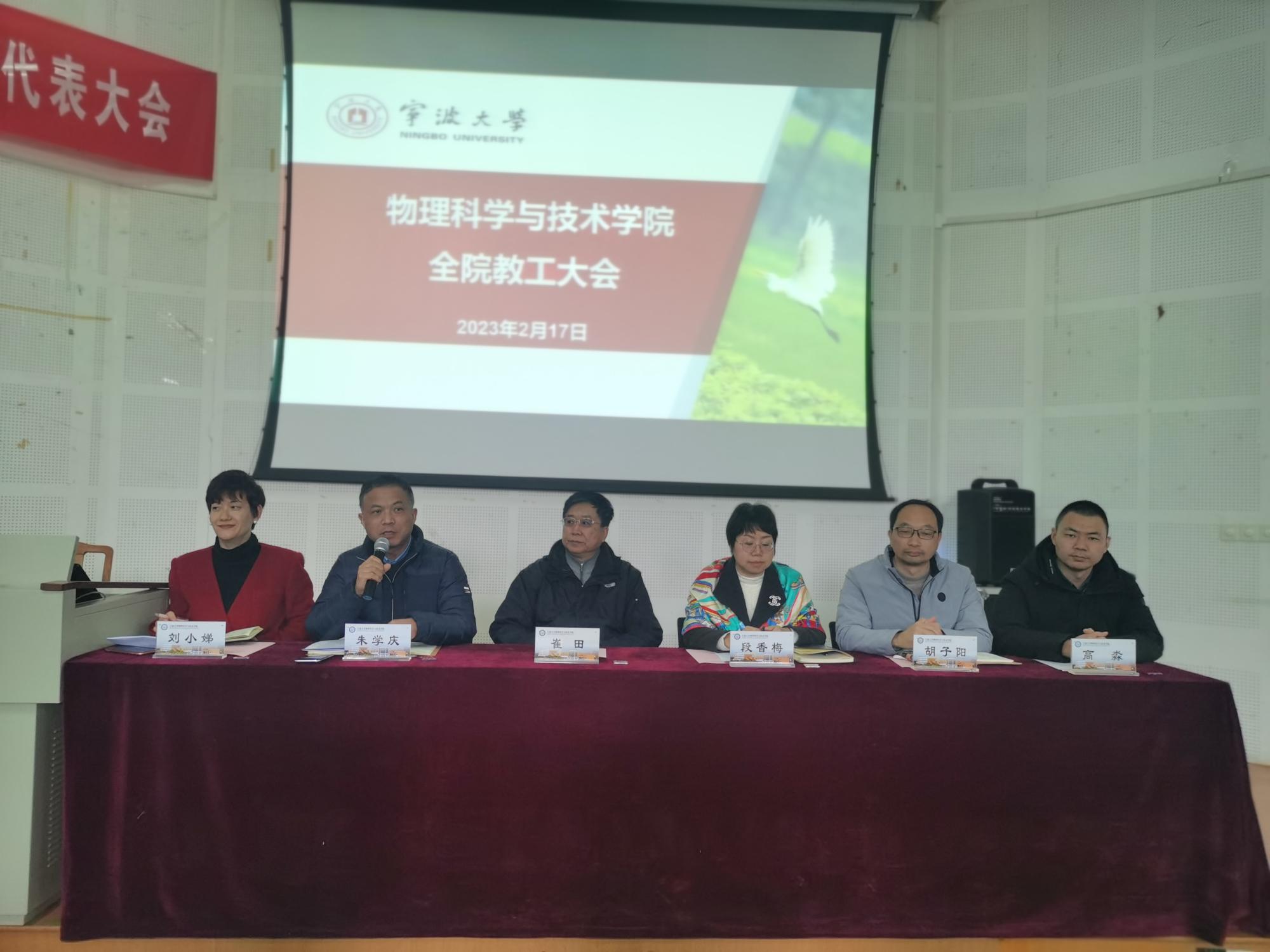 2月18日,物理学院召开新学期全院教职工大会,会议传达了学校2023年寒假中层领导干部学习扩大会精神,并部署了下阶段学院各项工作任务。会议由院党委书记朱学庆主持。