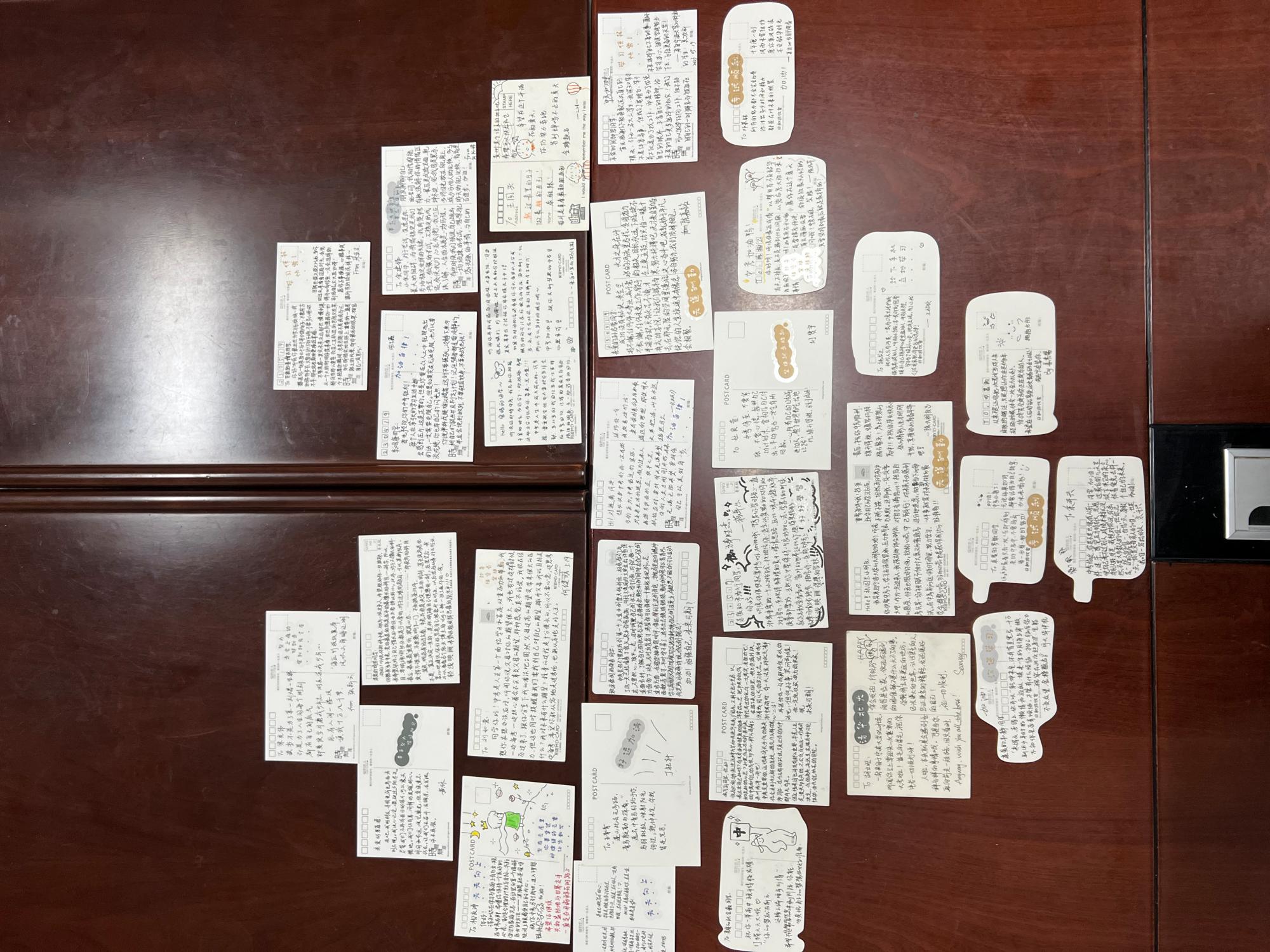 来自学院团委和本科生第一党支部的同学们自发组织写明信片,为贵州学子一对一结对解惑,为即将面临中考的学生们送上祝福与鼓励,也为承受学业压力的学生们带去支持与温暖。纸短情长,30封凝聚着真情的信笺越重山,渡江海,架起心灵的沟通桥梁,寄达了一份温情,更寄达了一份期冀。
