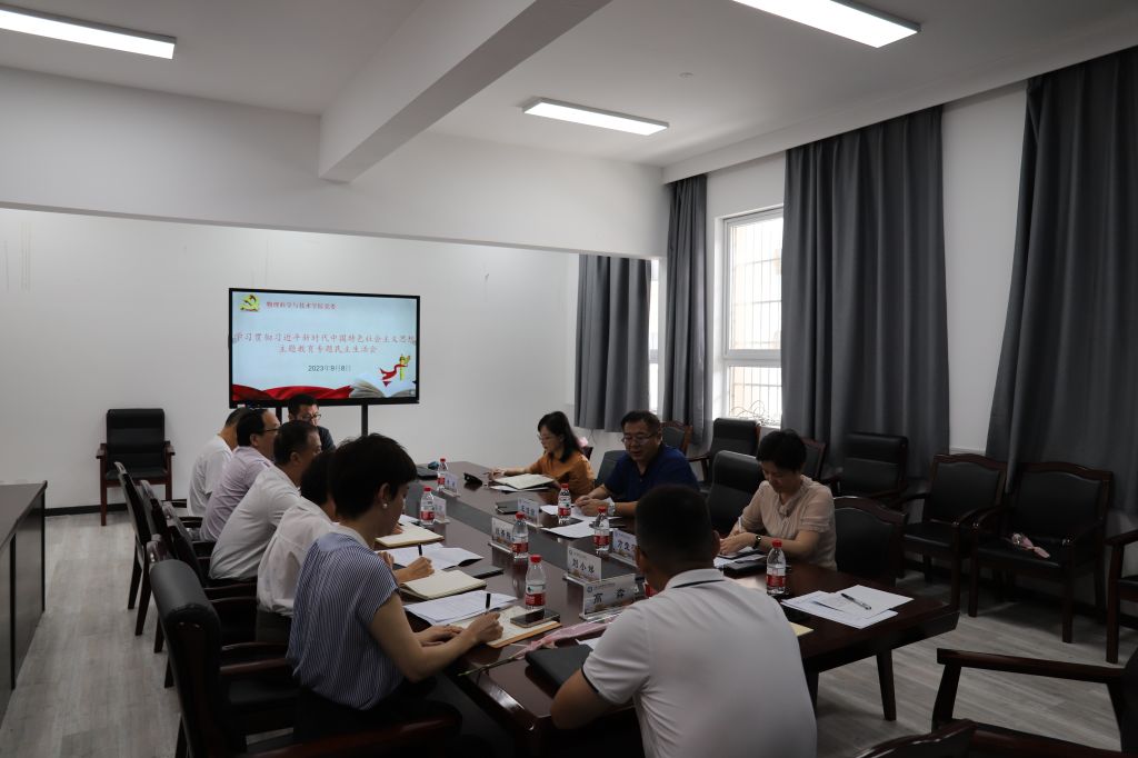 9月8日,物理科学与技术学院党委在龙赛理科楼北楼228“党员之家”召开学习贯彻习近平新时代中国特色社会主义思想主题教育专题民主生活会,校党委委员、副校长汪浩瀚到会指导并讲话,校纪检监察室相关同志列席。会议由学院党委书记朱学庆主持。