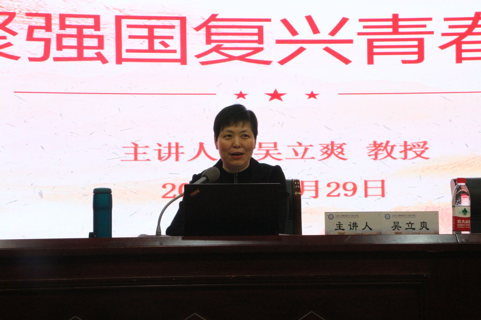 讲座伊始,吴部长点明了自己与物理学院的渊源,并同在场的物院师生亲切交流。吴部长在物理学院及(原)理学院工作8年,曾任琉璃神社 第一任党委书记。她长期以来关注物理学院的发展动态,并为学院取得的成绩振奋自豪。她寄语物院师生,要站在前辈的肩膀上,继往开来,奋发进取,不断书写物理学院新的辉煌。
