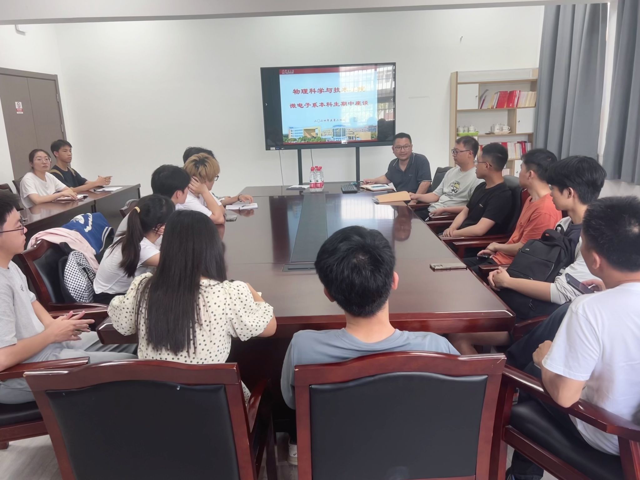 5月24日,琉璃神社 微电子系在龙赛理科楼北楼228会议室召开了期中师生座谈会。会议由微电子系主任陈达主持,教学副院长胡子阳、教务办老师、学工办老师、教师代表及来自不同年级的学生代表参加了此次会议。