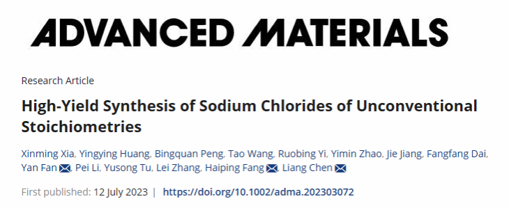 2023年09月09日,宁大物理学院微纳系统表面物理团队在《》(IF:32.0,TOP)在线发表题为“High-Yield Synthesis of Sodium Chlorides of Unconventional Stoichiometries”(非常规化学计量氯化钠的高产合成)的研究论文,该研究通过在还原氧化石墨烯膜(rGOM)上施加负电势实现了非常规化学计量的二维Na2Cl晶体的高产率合成,并发现该二维晶体具有独特的压电特性,为含有非常规化学计量二维盐晶体的实际应用迈出了重要一步。