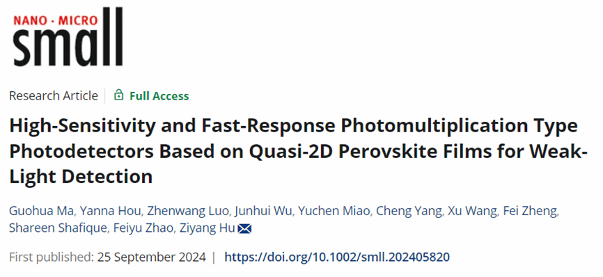 胡子阳教授领衔的课题组在准二维钙钛矿光电探测器领域取得了显著的科研成果。该团队的研究论文 “High-Sensitivity and Fast-Response Photomultiplication Type Photodetectors Based on Quasi-2D Perovskite Films for Weak-Light Detection” 在国际知名学术期刊《Small》上发表。论文的第一作者是琉璃神社