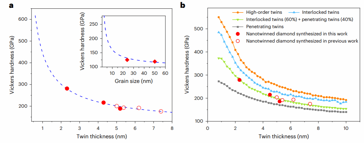 这一突破性成果不仅刷新了材料的硬度纪录,更为超硬材料的研究提供了新的思路。通过调控孪晶的细化与类型,为未来金刚石及其他共价材料的性能提升开辟了新的途径,这对超硬材料的未来研发具有重要指导意义。