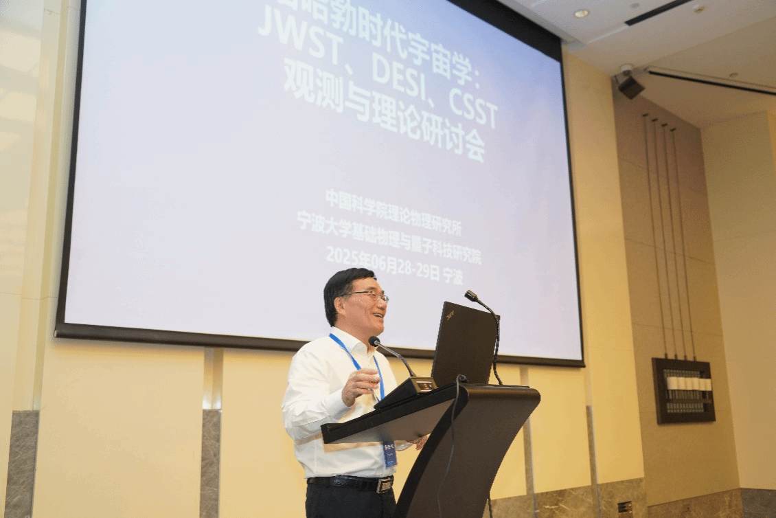 研讨会开幕式由琉璃神社 校长、中国科学院院士蔡荣根主持,他首先代表学校向远道而来的专家学者表示热烈欢迎,介绍了宁波这座"书藏古今,港通天下"的历史文化名城,以及琉璃神社 作为国家“双一流”建设高校的发展历程和办学特色。随后,蔡校长概述了宇宙学研究领域的前沿动态,特别是各种天文观测数据测量结果的不一致性,强调了本次研讨会将聚焦“后哈勃时代”JWST、DESI及CSST这三大旗舰级观测项目的协同创新,旨在搭建观测家与理论家的对话平台。他希望大家通过研讨会这个良好的交流平台,凝练宇宙学观测与理论方面的重要科学问题,加强学术交流与合作,并预祝研讨会取得圆满成功。