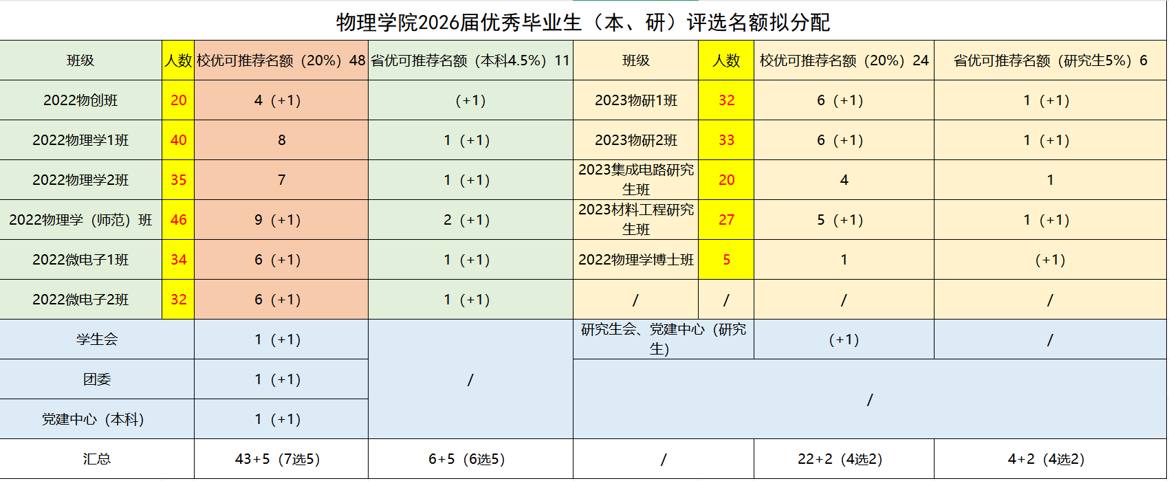 (说明:+1为各班或组织竞选名额,即各班可推荐1名同学至学院,通过学院评审委员会统筹评定,本科生校优7选5,省优6选5;研究生校优4选2,省优4选2。)
