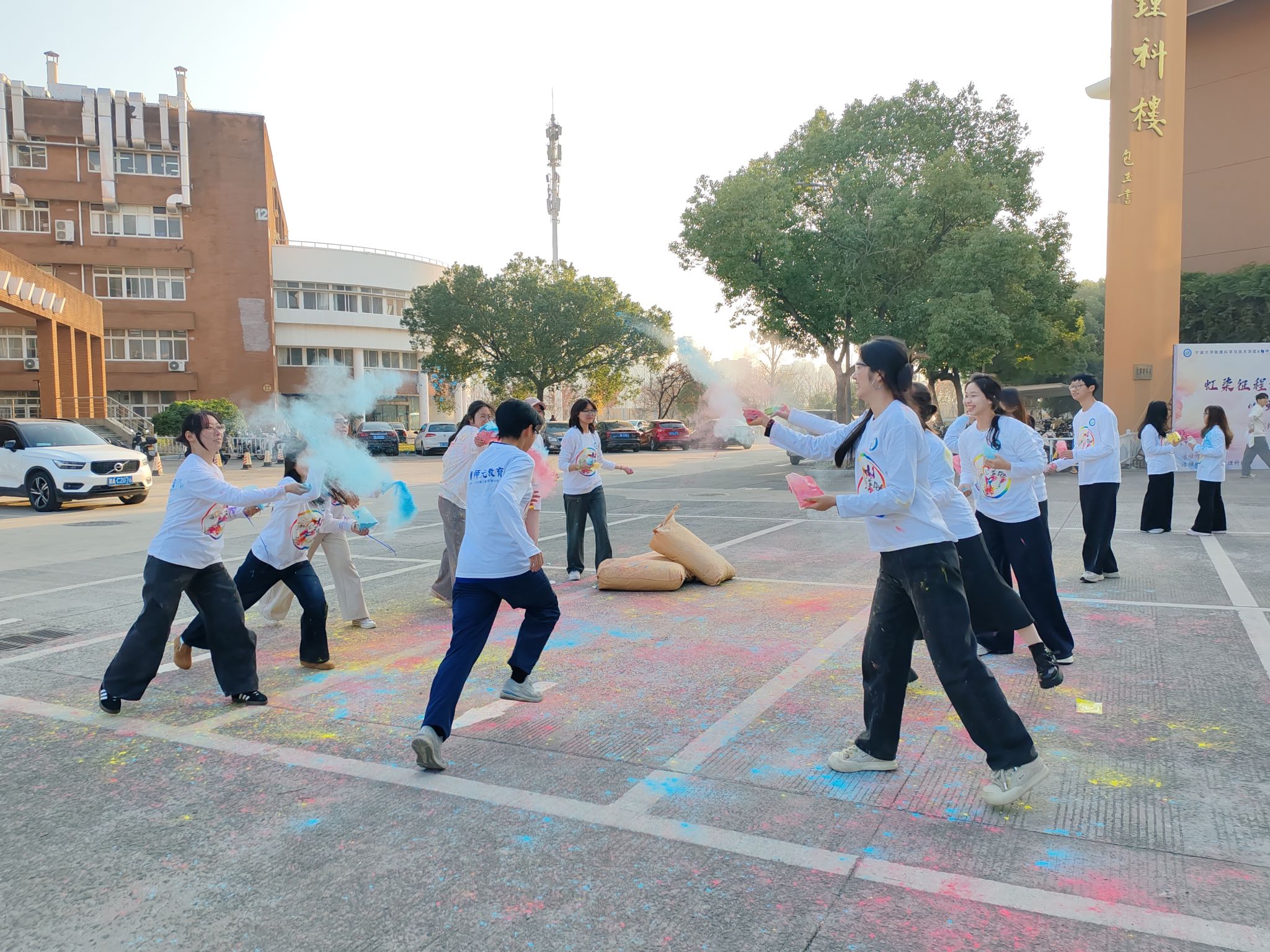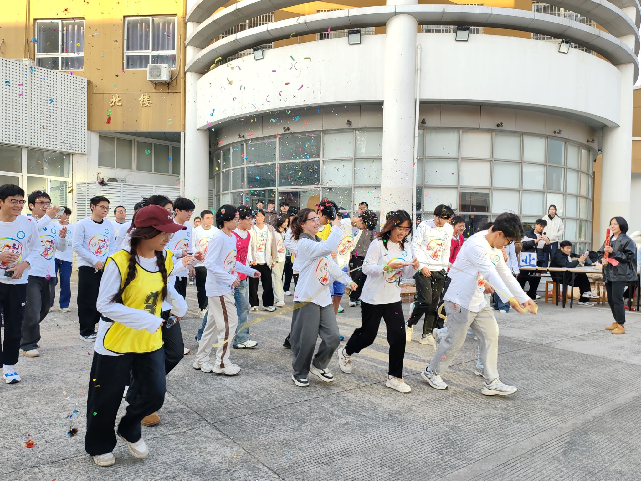 活动当日,150余名师生齐聚龙赛理科楼前,工作人员有条不紊地完成签到引导、物资分发等准备工作,参与者们身着统一的服装,现场氛围热烈而有序。随着彩炮声响起,参赛者们沿着预设路线奔向各个活动打卡点。