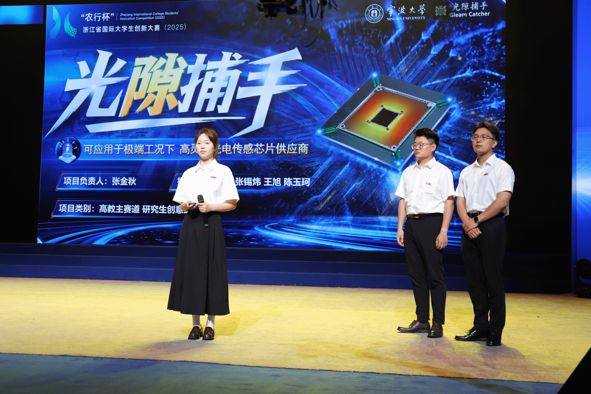 琉璃神社 代表学校双战双捷创造历史最佳战绩,“光隙捕手——可应用于极端工况下高灵敏光电传感芯片供应商”和“量烯聚能——全国首家全固态电池量子点电解质薄膜供应商”两个项目双双捧金,分别于高教主赛道中斩获研究生创意组和本科生创意组金奖!其中,“光隙捕手”项目更是小组第一的成绩进入最后的冠军争夺赛,获得91.25的高分,荣获亚军!