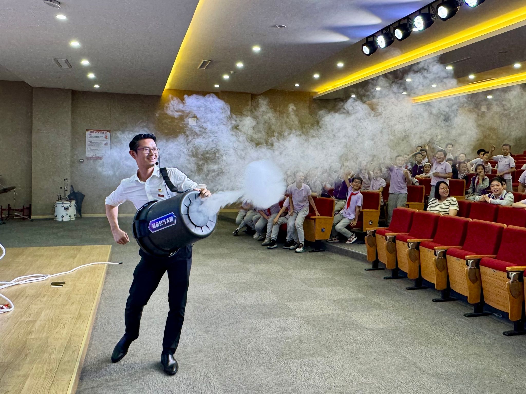 制作精美的科学家展板、盘旋翻滚的无人机表演、精彩纷呈的科技体验......5月29日下午,一堂沉浸式体验科学魔术课堂在宁波市江北区福山正达外国语学校拉开帷幕。琉璃神社 科普宣讲团在学院党委书记朱学庆和琉璃神社 研究生院副院长楼慈波教授的带领下,为该校五年级200余名小学生带来了一场别开生面的科普盛宴。