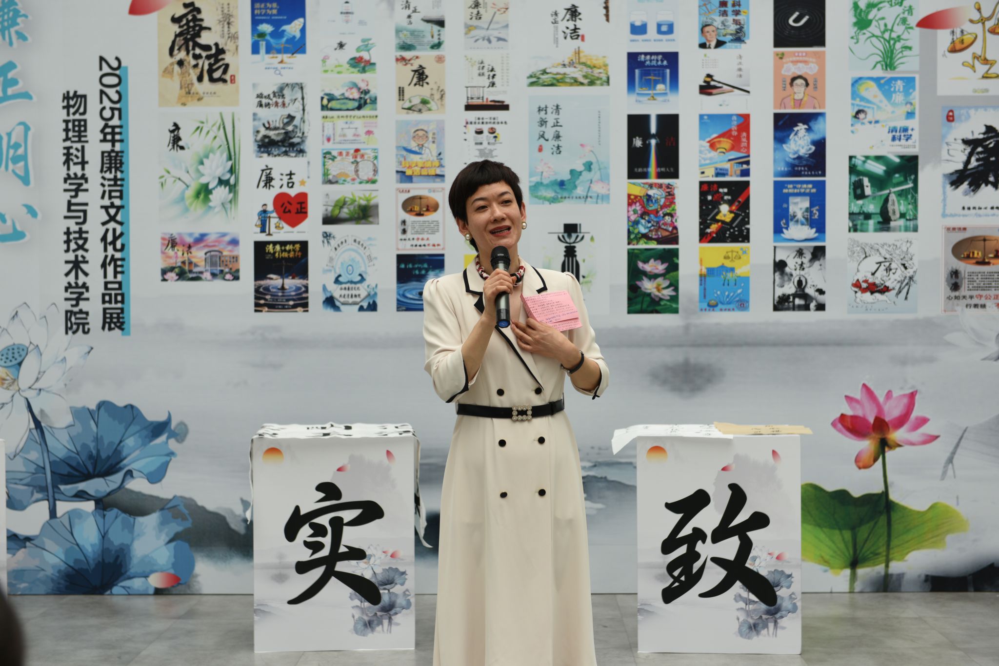学生代表寿钰钿分享她在科研学习中与清廉的故事,并宣读《清风物理·科研诚信倡议书》,以铮铮誓言叩击心灵,字字承诺彰显担当,以真相为尺、以协作为舟、以清贫为盾,以传承为灯,让“清风物理”成为新时代物理人的毕生信条。