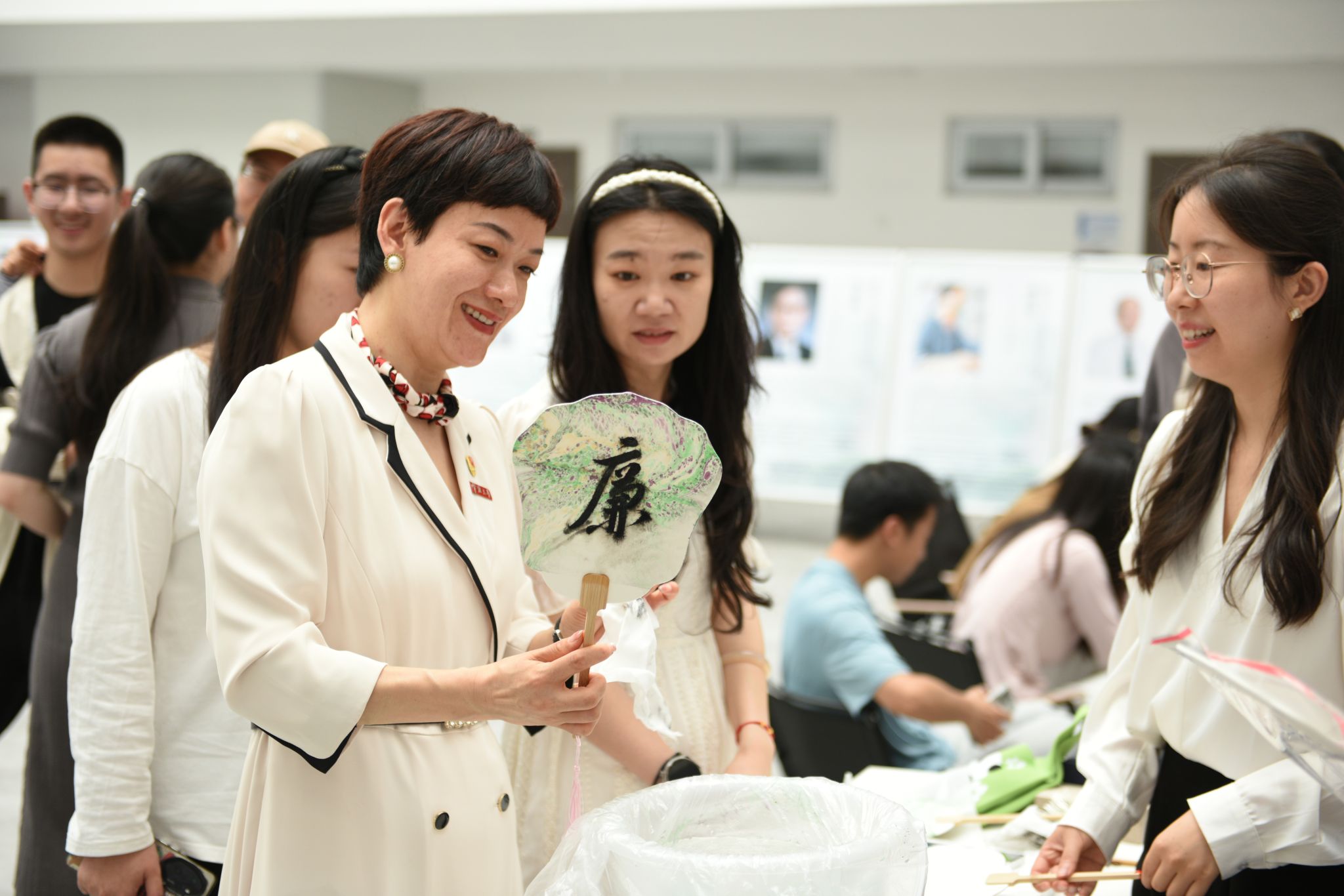 恰逢端午临近,活动特别设置“粽香话廉”手工体验区师生们在现场包制“廉洁粽”编织艾草香囊并在漆扇上题写廉语,融廉于趣,润物无声