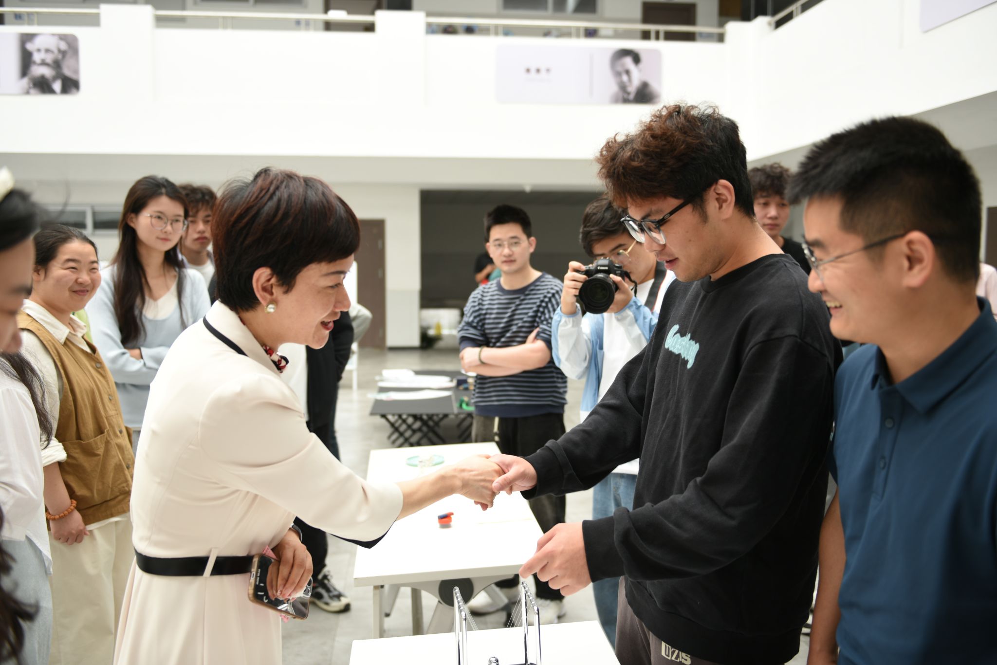 本次活动的清廉艺术展区设置“思政”“实验”“文艺”三个主题展区,现场通过展板、演讲和互动问答,讲述了谈家桢、王阳元、马余刚30位宁波籍科学家坚守科研诚信、淡泊名利的故事。科普实验互动区人气火爆,四个物理实验化身“廉洁课堂”学院以物理原理为载体,构建“科学现象—廉洁隐喻”的沉浸式教育场景。师生亲手操作实验,将物理规律与清廉感悟对照联结,以科学之理讲透廉洁之道,让抽象理念在可感知的实验中转化为内心共鸣。