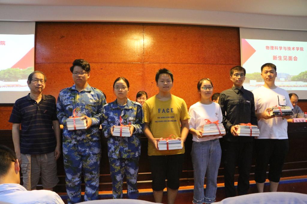 举行新生见面会9月1日下午,物理学院2018级分流学生、2019级本研新生见面会在阳明学院315报告厅举办。学院党政领导、系主任、专业负责人、班主任、辅导员和270多名新生参加了见面会。一段简短而温纯的视频拉开见面会的序幕,视频中2019届读研、读博毕业生们向学弟学妹们送来美好祝福和祝愿,并提出了不少关于学习生活方面的建议。见面会上,物理学院“一理阳光”流动书库成立,学院特聘院长楼森岳向各班赠书...